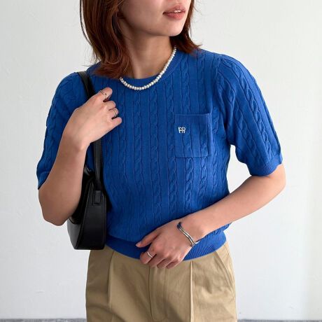 FR刺繍ケーブル柄ポケ付きプルオーバー