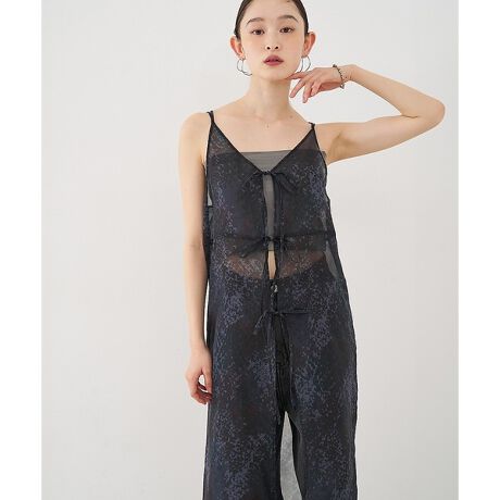 【前後着用可】水彩アート ニュアンス柄 2WAY シアー キャミワンピース ロン