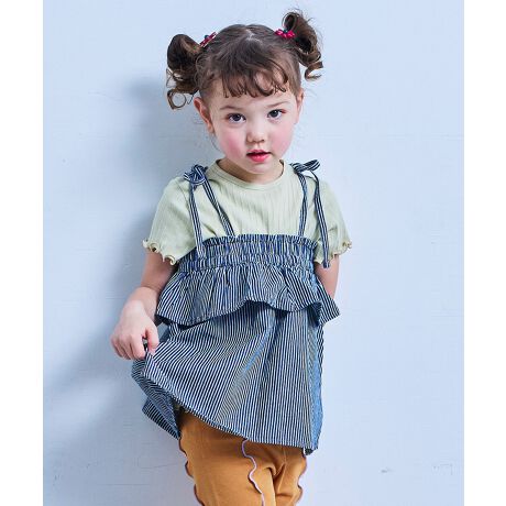 肩ヒモは結ぶ長さによって調整が可能で、結び目のリボンもコーデのアクセントに♪