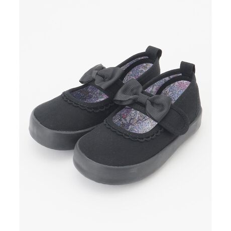 幅広いシーンで大活躍間違いなしの、バレエシューズ。スタイリングのワンポイントになる真ん中のリボンは、キュートな印象を与えてくれます。中敷きは花柄デザインで、脱いでもかわいい♪マジックテープ使用で、お子様お一人でも簡単に脱ぎ履き出来るのも嬉しいポイントです。