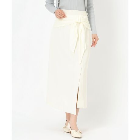 柔らかなシフォンリボンがアクセントになったタイトスカート。アシンメトリーなラップ風デザインで、大人の女性らしさを演出。Iラインシルエットが着こなしもスマートで品のある装いにまとめてくれます。タックインすることでデザインも引き立ち脚も長く見せてくれる嬉しいアイテムです。■fabric透け感[無し]裏地[すべて有り]伸縮性[無し]生地の厚さ[普通]ウエストゴム[有り]ファスナー[有り]ポケット[無し]
