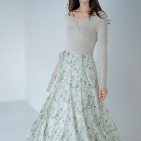 25新作 カシュクールフラワー柄ドッキングワンピース