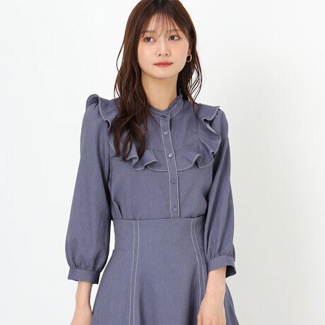 25春夏新作 ポリデニムフリルブラウス