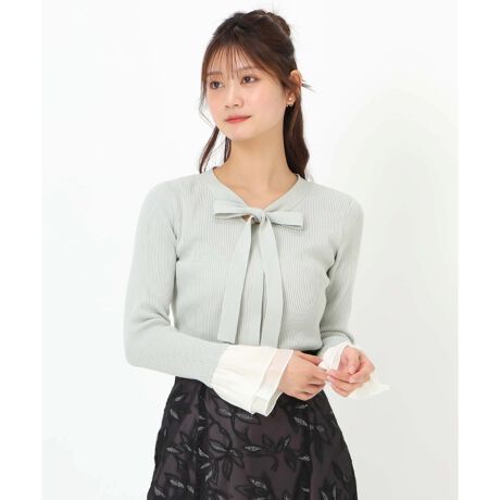 25春夏新作 シアーフリルボウタイニット