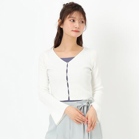 25春夏新作 フレア袖Vネックリブカーディガン