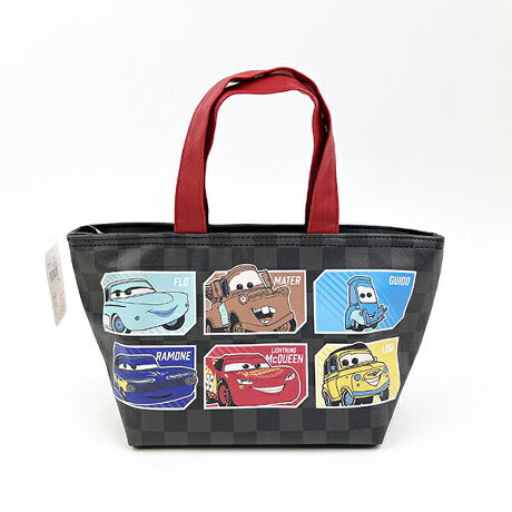 カーズのプリントが可愛い!保冷ランチトートです♪お子様も、大人も使えます☆メッシュポケットには保冷剤なども入れられます。巾着やチャームバッグなどと揃えて持つのもおすすめです。