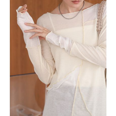 天竺・リブ編みでブロック切替をした、前後左右アシンメトリーなメロウトップス。シンプルなシルエットと程よい薄さの生地感なので、レイヤーするアイテムによっては通年着用できるアイテムです。肌に馴染みやすい3カラー展開になっています。