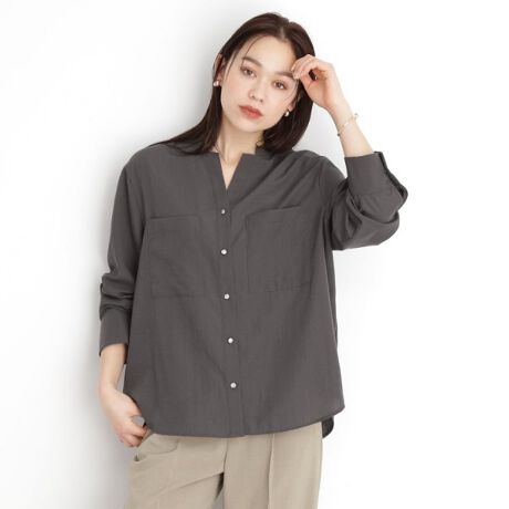 衿元にきざみが施されたスキッパーシャツは、モダンで洗練された印象を与える一着です。