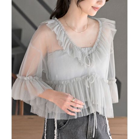チュールフリルカーディガン