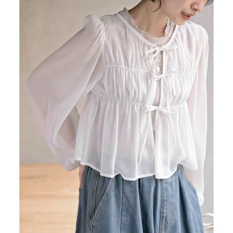 シアーリボン2WAYカーデブラウス