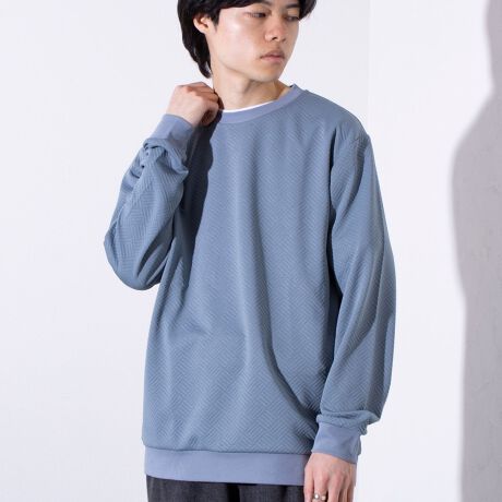 程よいハリ感としなやかさを併せ持つリンクスの生地に、全体にデザインを巡らせることで品よく印象付けたクルーネック長袖Tシャツ。