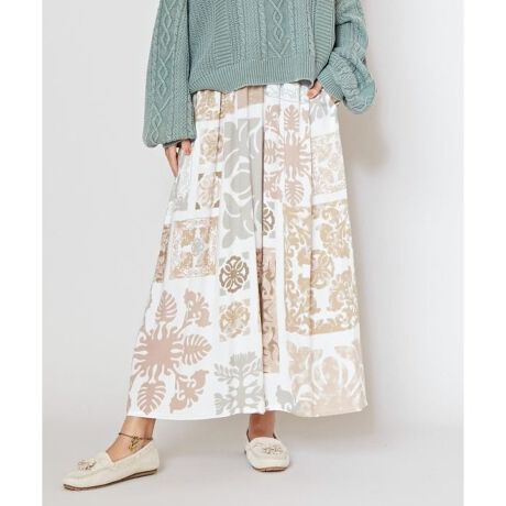 [型番:4IA-5106-2025]ハワイアンキルト柄をプリントしたワイドパンツ。素肌に心地よいレーヨン素材で、ハワイの爽やかな海風のように爽やかで軽やかに着こなせる一枚です。リゾートやカジュアルのどちらでも着れるデザインが目を惹きます。