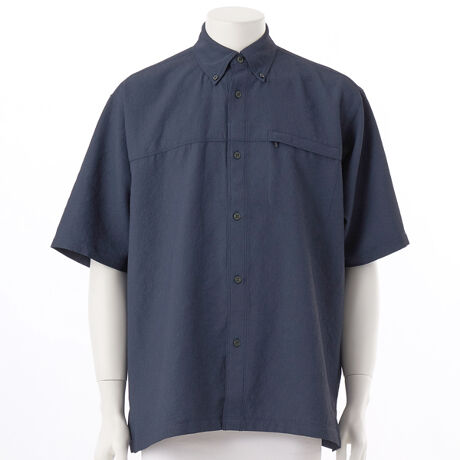 高通気とUVカットを両立したリネン調の機能素材を採用した「Awning」コレクションの半袖シャツ。ワッフル調の生地は肌離れがよく、通気性のよさも特徴。光の透過を抑えるセラミック粒子の含有質を高めた糸を使用することで、UPF値と遮熱性を高めています。糸にリネン調の加工を施すことで、ポリエステルでありながら、天然素材のようなナチュラルな風合いを実現。吸水加工により、乾きやすさも備えています。UVプロテクト(UPF50+、紫外線カット率95%以上)機能付き。左胸には小物類の収納に便利なファスナー付きポケットを配置しています。シンプルなデザインのボタンダウンシャツは、リラックスして着用できる、ゆとりのあるシルエット。高温多湿な夏の都市生活を快適に過ごすための機能に、デザイン性を兼ね備えたアイテムです。