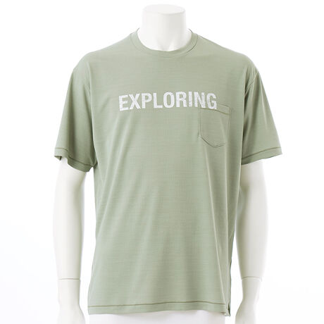 高い汗処理機能を持つ半袖シャツ。リサイクルポリエステルを採用しています。水分を保持しないポリエステルはっ水糸を肌面に使用することで、汗によるべたつきや冷えを抑えます。表面は、なめらかで速乾性も備えたポリエステルニット。かいた汗を素早く吸い上げて拡散し、汗戻りを軽減します。静電気の発生を抑える静電ケア設計を採用。UVガード(UPF30-50+、紫外線カット率90%以上)機能付き。 繊維に付着したバクテリアの繁殖を抑えて、汗によるにおいの発生を軽減するポリジン加工を施しています。フロントにパッチポケットとプリントを配置し、夏の縦走登山やキャンプなどのアウトドアに対応する機能性を備えながらも、遊び心のあるアイテムです。