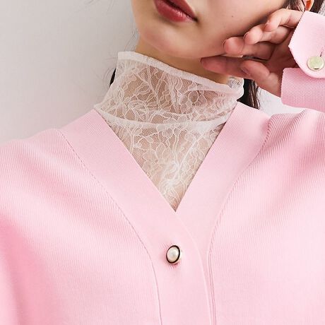 フラワーレースハイネックトップス≪洗濯機で洗える≫