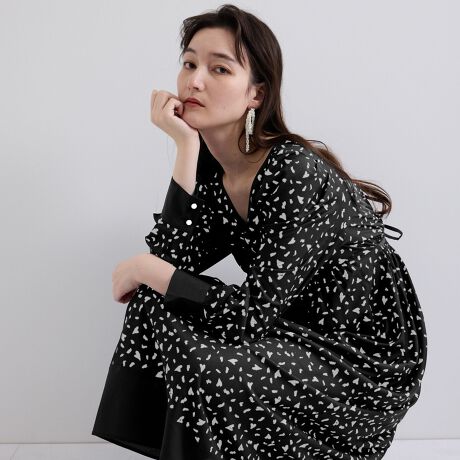 袖先と裾周りは単色で切り替え、甘さの中におとなのシャープさをプラスします。