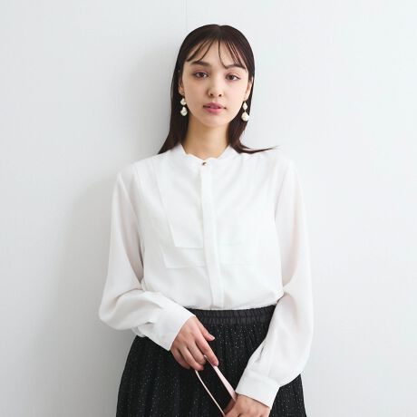 ジョーゼットフロントヨークシャツブラウス≪手洗い可能≫