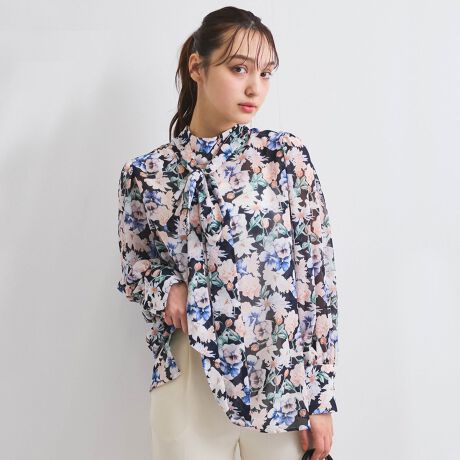 フラワーシアーハイネックブラウス≪洗濯機で洗える≫
