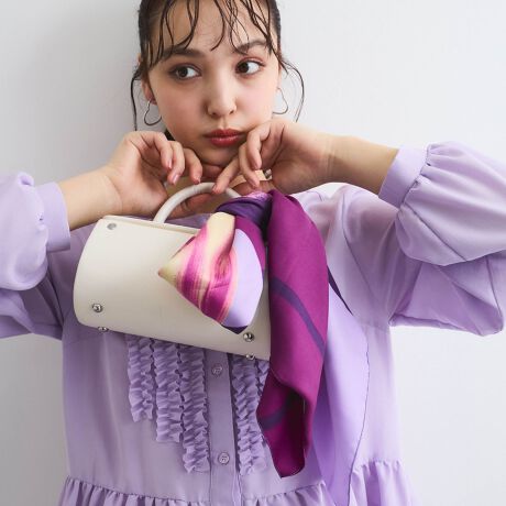 チューリップとカラーパネルグラフィックで、まるで絵画のような大判スカーフに。