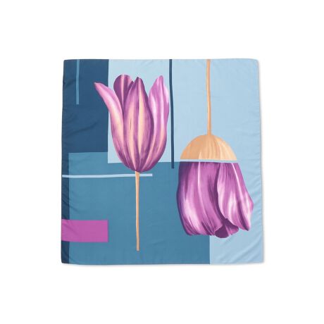 チューリップとカラーパネルグラフィックで、まるで絵画のような大判スカーフに。