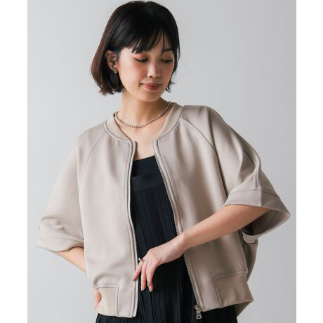 ドルマンスリーブでゆったりとした5分丈のデザインは、ラフな着心地ながらも前身頃に施された切り替えが絶妙な細見え効果を発揮。ショート丈なので、ワンピースやスカートスタイルとも相性抜群です。ウエスト部分には太めのリブを使用しており、自然とウエスト位置が高く見え、スタイルアップが期待できます。シルエットがゆったりしているので、インナーを選ばず気軽に羽織れるのも嬉しいポイント。おしゃれも快適さも妥協しない、大人の女性にぴったりのブルゾンです。