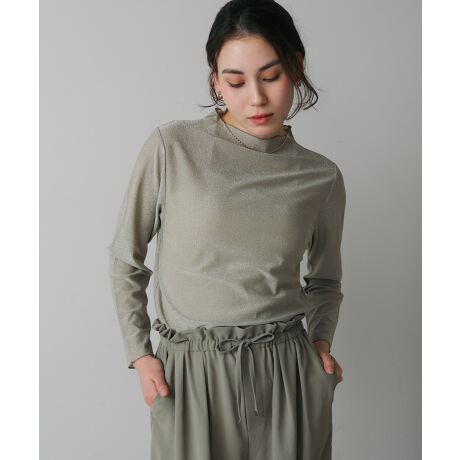 レイヤードスタイルにトレンド感をプラス出来るシアーインナー。ラメと無地は気分に合わせて使い分け出来るので、どちらも欲しくなる1枚。ボトルネックなので首回りをすっきりと見せてくれます。メロー始末にすることで縫い目のチクチク感も気にならないのも嬉しいポイント。