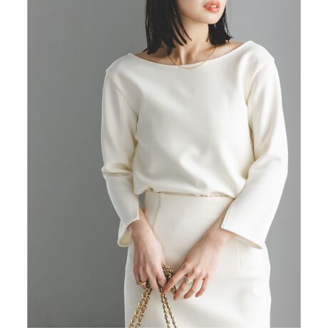 ニットのように抜群の伸縮性があり快適な着心地を叶えつつ、素材自体はジョーゼットの布帛なのできちんと見えする良いところ取りな素材。デザインはシンプルでありながら、前後どちらを前にしても着られる2way仕様で汎用性も申し分なし!すっきりとした身頃とハーフスリーブでインナー使いしやすい上に、程よく厚みのある素材なので肉感を拾いにくく1枚着でも着用しやすいのが嬉しい。