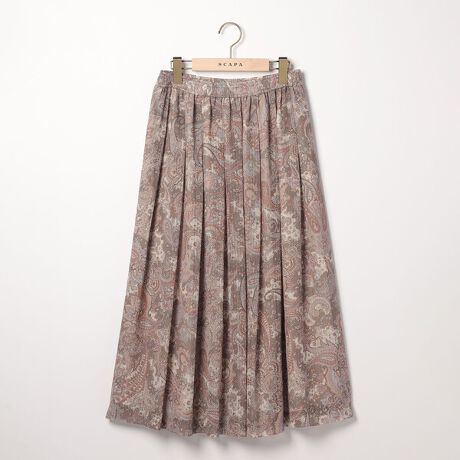 軽やかな風合いのポリエステル更紗を使用したフレアスカート。春夏の装いにぴったりの、オリエンタルなペーズリー柄に包まれた1点です。ゆったりとしたドレープで、身のこなしまで綺麗に見せるシルエット。ウエストはゴム仕立てになっており、リラックス感のある穿き心地を味わえます。上品な光沢感も魅力です。