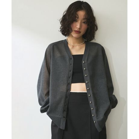 程よくゆったりとしたサイジングが心地よい、透け感のある浅めのVネックカーディガン。