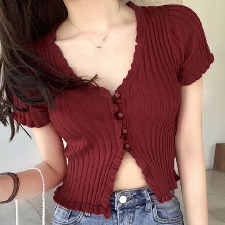 ショートな丈感で様々なパンツと一緒にマッチさせると可愛いムードを演出してくれる