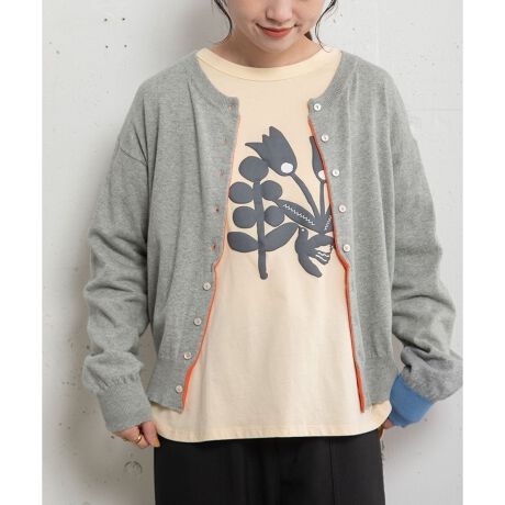 変形前立てクルーネックニットカーディガン