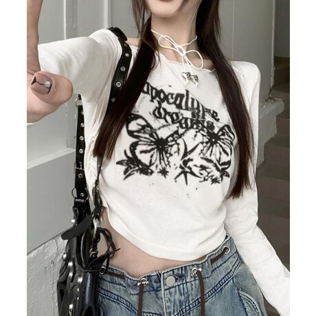 ヘソ出しロゴtシャツ 長袖 オルチャン