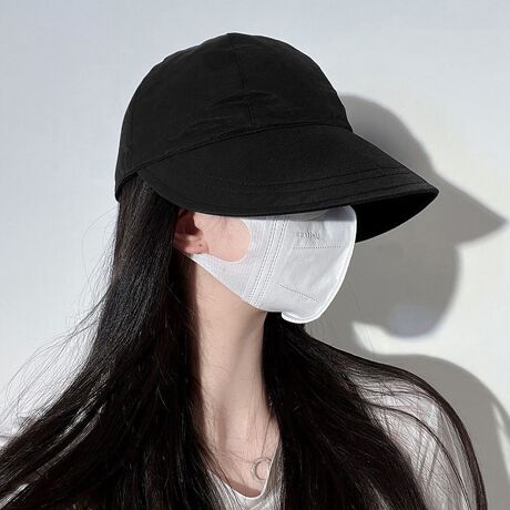 幅広のつばですっぽり顔を隠れて、真夏でしっかり日焼け防止して小顔見せもできるレディースキャップ