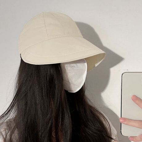 幅広のつばですっぽり顔を隠れて、真夏でしっかり日焼け防止して小顔見せもできるレディースキャップ