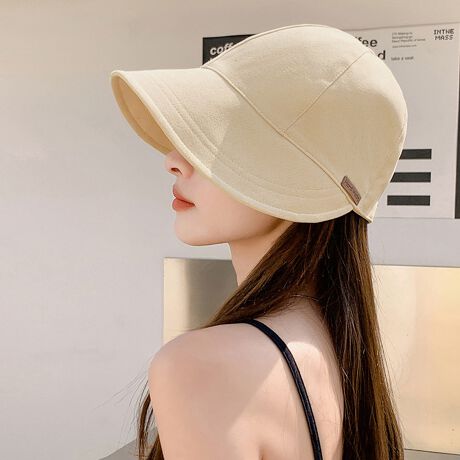 幅広のつばですっぽり顔を隠れて、真夏でしっかり日焼け防止して小顔見せもできるレディースキャップ