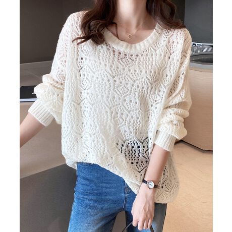 透かし編みニットトップス 長袖 春秋夏