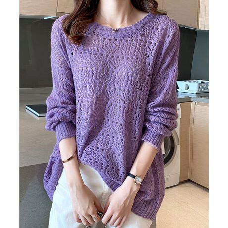 透かし編みニットトップス 長袖 春秋夏