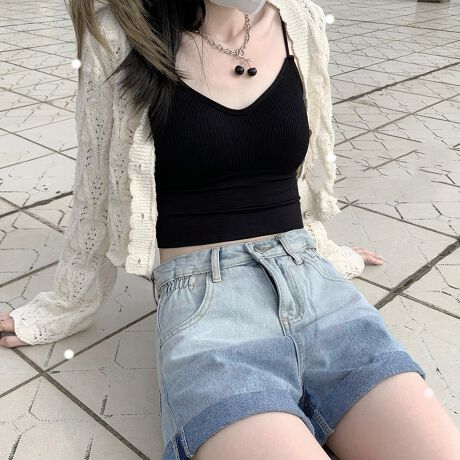 カラフルな生地でいつものコーデプラッシュアップしてくれるグラデーションカラーデニム ショートパンツ