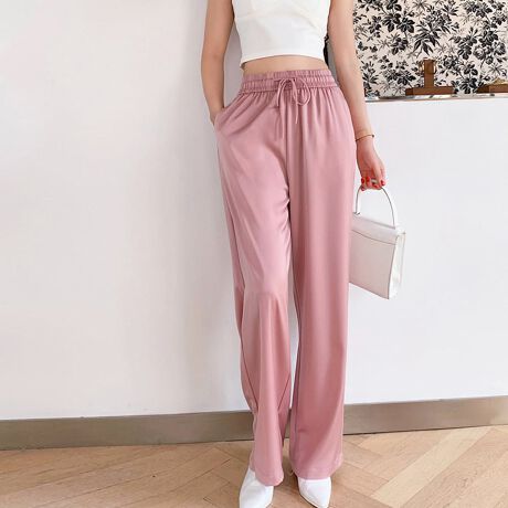上品な程よいツヤ感と、鮮やかなカラーが雰囲気のあるサテンイージーパンツ。