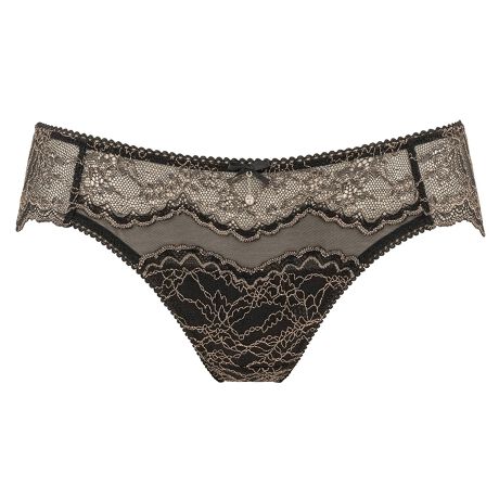 レースとソフトパワーネットを使い合わせた、程よく透け感のある華やかなパンティ。