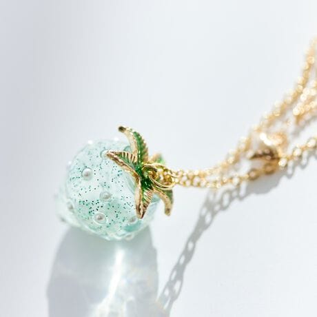 大きめないちごチャームと小さなハートが連なるデザインが存在感あるローズティアラオリジナルデザインのネックレス。