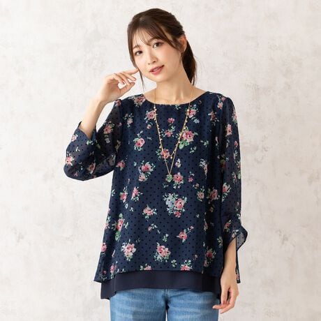 後ろのリボン風デザインにレイヤード風のデザインが毎シーズン大人気のブラウス。