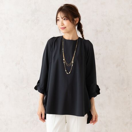 優しいドライタッチが着心地のいい、伸縮性の高いブラウス。