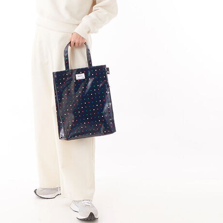 晴れの日も雨の日もデイリー使用できる軽量でラミネート加工されたトートバッグ。A4サイズで書類も雑誌もOK。