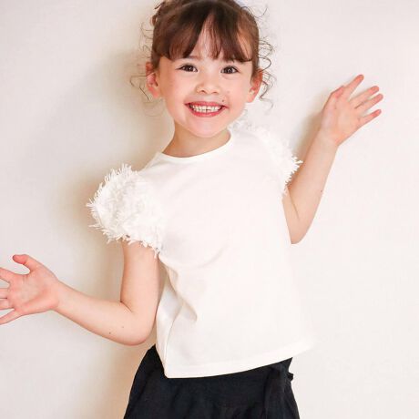 キッズ Tシャツ 半袖 女の子 通販 カットソー 73052401 半袖Tシャツ 夏服 パフスリーブ 白 ホワイト シンプル 無地 可愛い おしゃれ かわいい オシャレ こども 女子 通園 通学 トップス 子ども服 子供服 キッズファッション