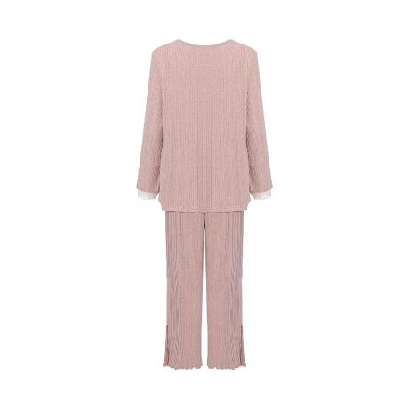 柔らかな肌触りのリブニット素材を使用した被りパジャマセット。