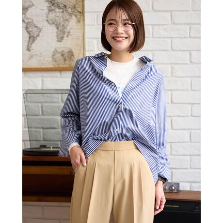 綿・レーヨン・ポリエステルのストライプを使用したシャツです。