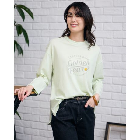 オーガニックコットン100%の天竺を使用したプリントTシャツです。オリジナルのGOLDENBEARプリントロゴを使用したデザインです。後ろ裾を少しラウンドさせて、ニットやプルオーバーとの重ね着を楽しめるようなシルエットにしました。