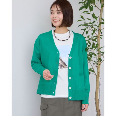 サッと羽織りやすいゆとりのあるシルエットのカーディガンです。