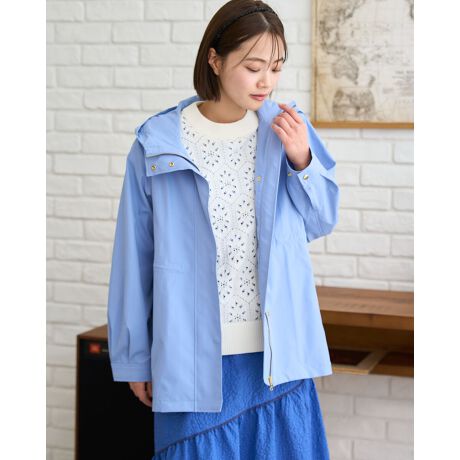 細かくツイルに織った生地は、ほのかな光沢と柔らかなタッチで優しい日差しに溶け込みます。フロントの留め具をヒヨクで隠しキレイめなスタイルに馴染むため通勤などオフィシャルなシーンでの着用も◎ファスナーやスナップをゴールドカラーで統一し羽織り姿もフェミニンに映します。内側のアジャスターでウエストにメリハリを効かせたスタイルも美人度が上がりおすすめ。ヒップにかかる着丈でボトムスを選ばない1着。